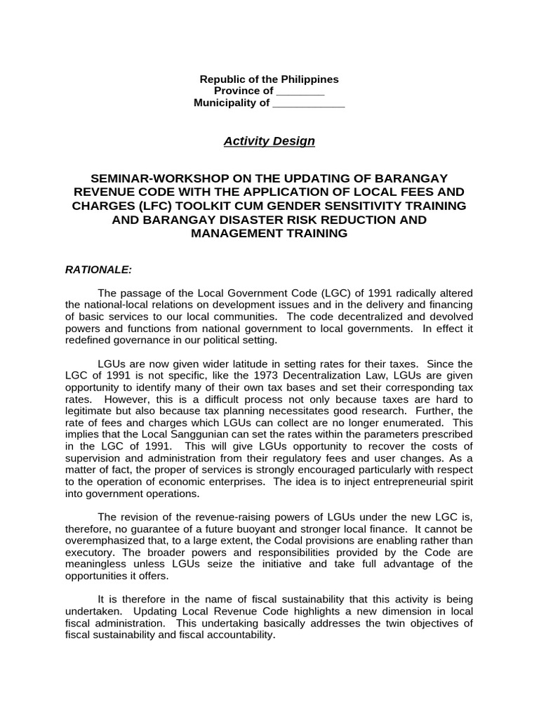 Seminar Workshop On The Updating of Municipal Revenue Code | PDF ...