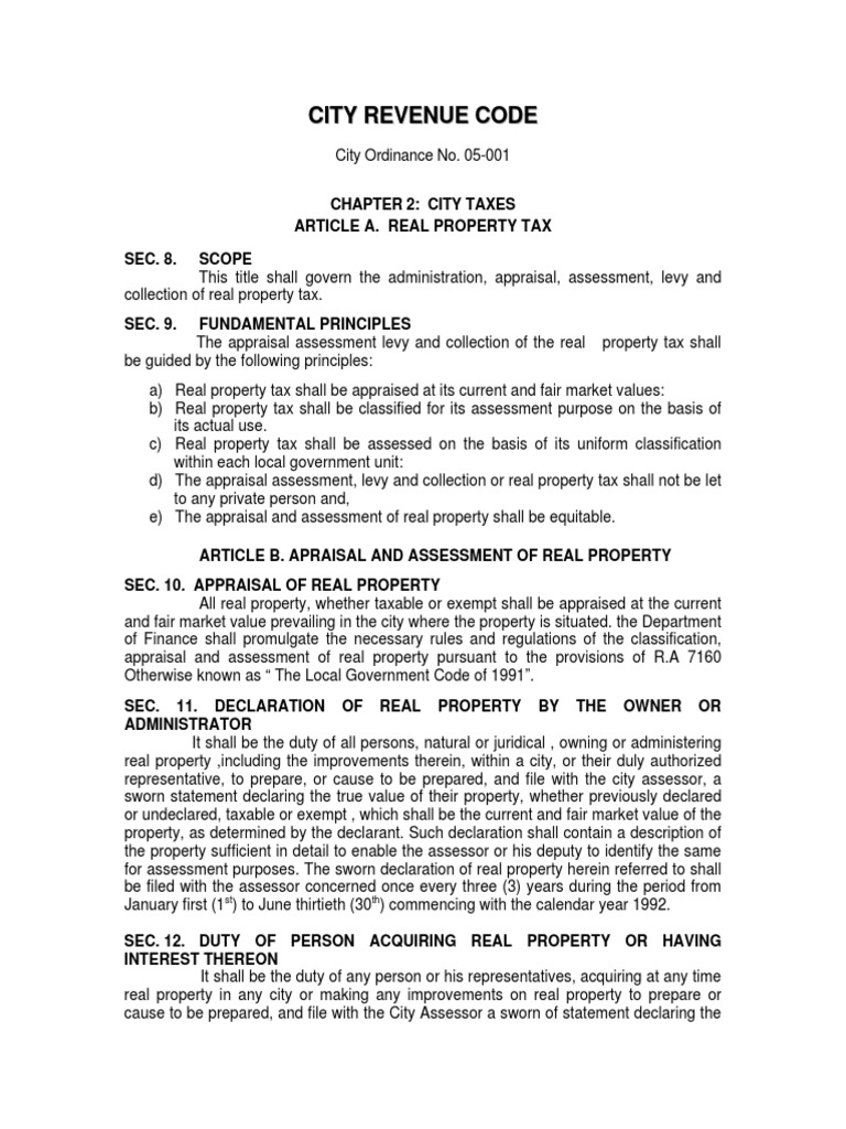 The New Revenue Code of Taguig (PDF Format) | PDF | Real Estate ...
