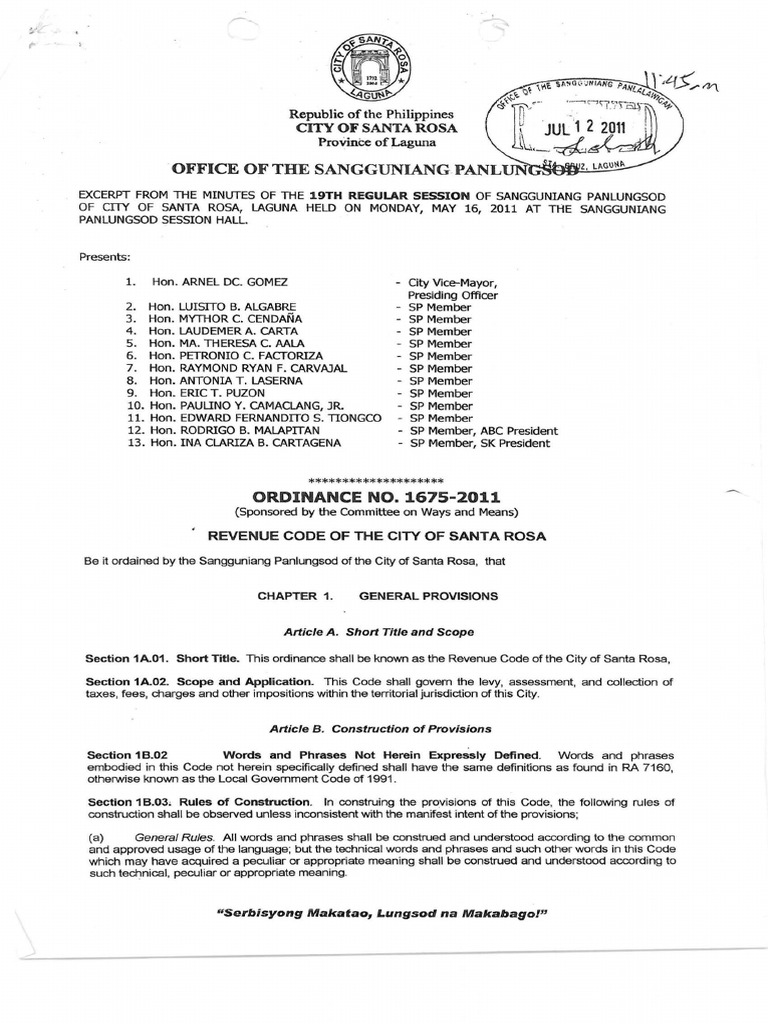 Barangay Revenue Code 2019 | PDF | Receipt | Taxes