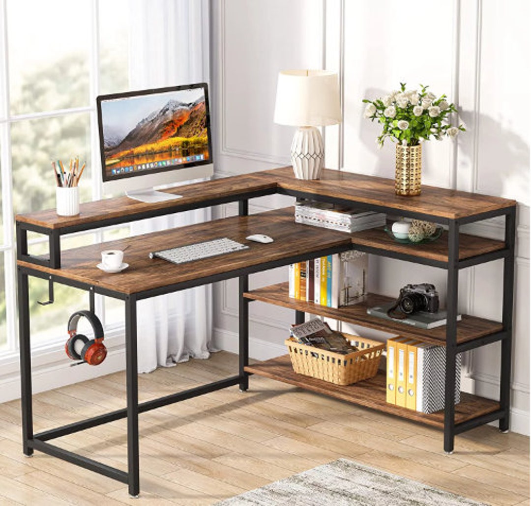 Tribesigns Reversible L Shaped Computer Desk With Storage Shelf and ...