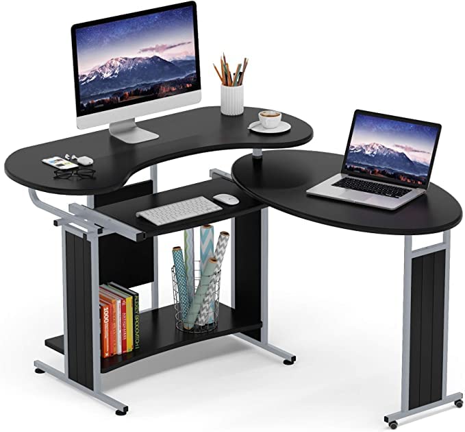 Amazon.com: LITTLE TREE 360° Rotating L-Shaped Desk, Reversible Corner ...