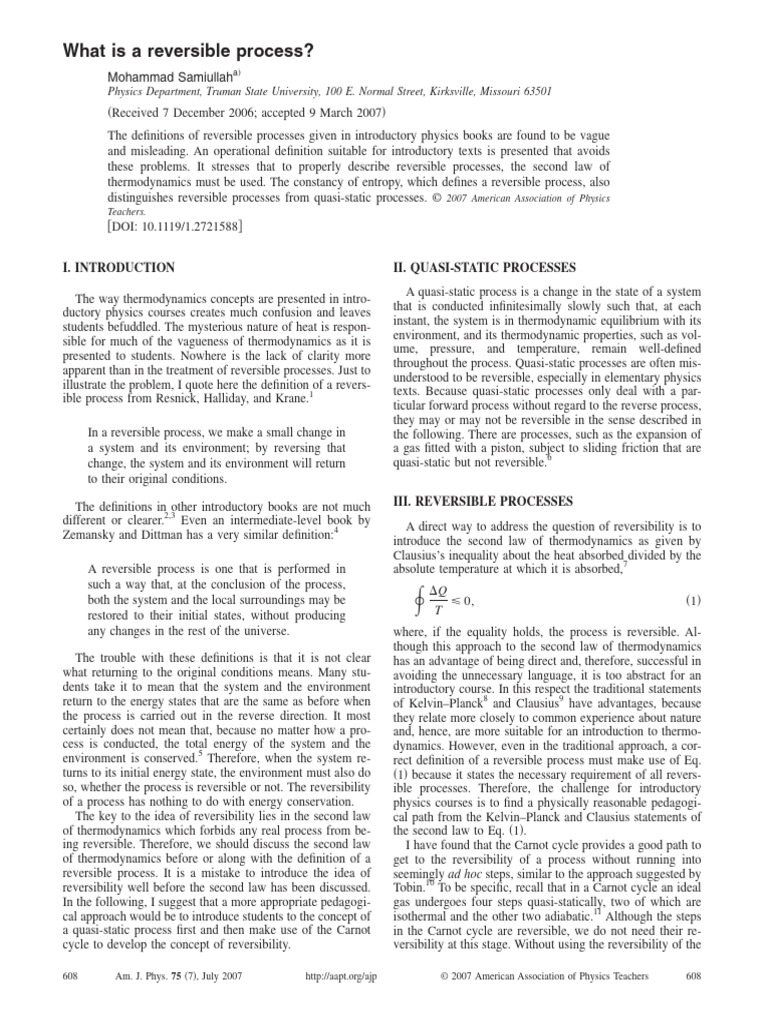 Clarifying Reversible Processes in Thermodynamics | PDF | Second Law Of ...