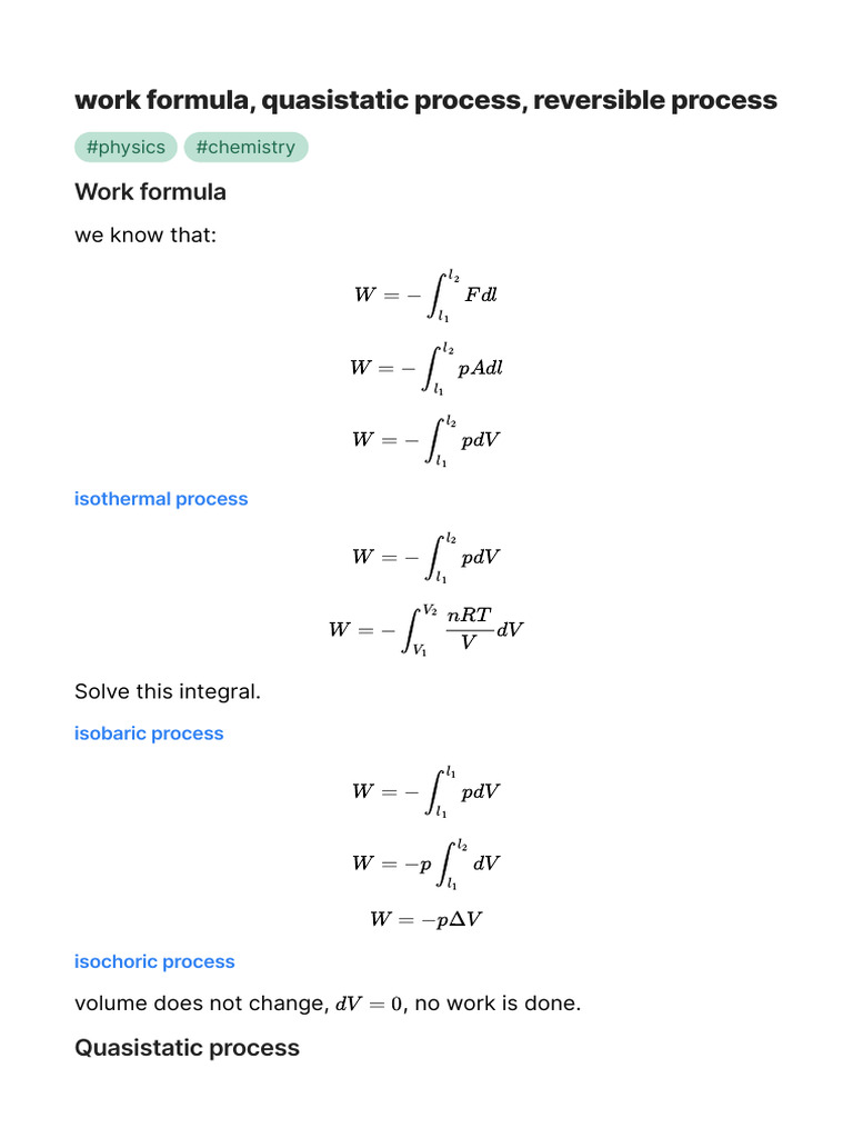 Work Formula, Quasistatic Process, Reversible Process | PDF | Physical ...