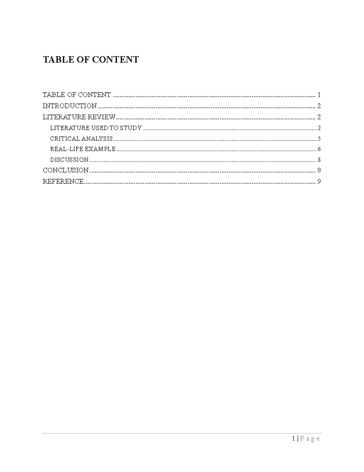 Literature Review Final .docx - Table of Contents 1. 2. Introduction.1 ...