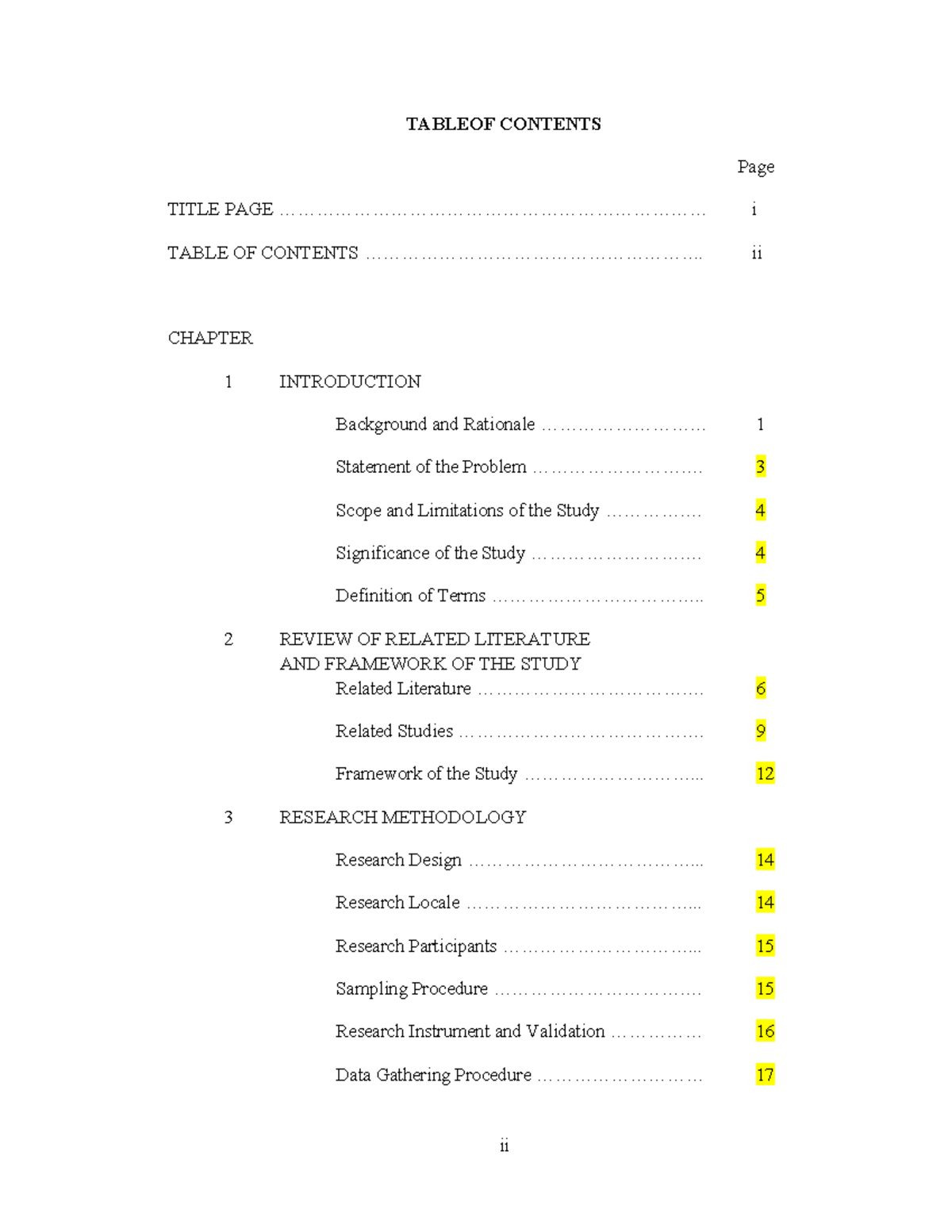 Review-of-Literature - Example - Table of Contents - - Studocu