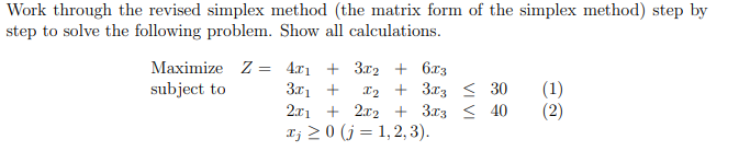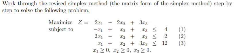 Solved Work through the revised simplex method (the matrix | Chegg.com