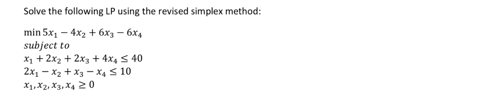 Solved Use the revised Simplex method to solve the following | Chegg.com