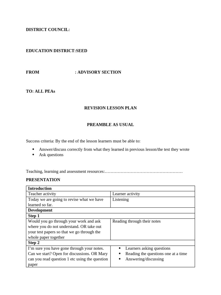 Revision Lesson Plan | PDF | Lesson Plan | Education Theory
