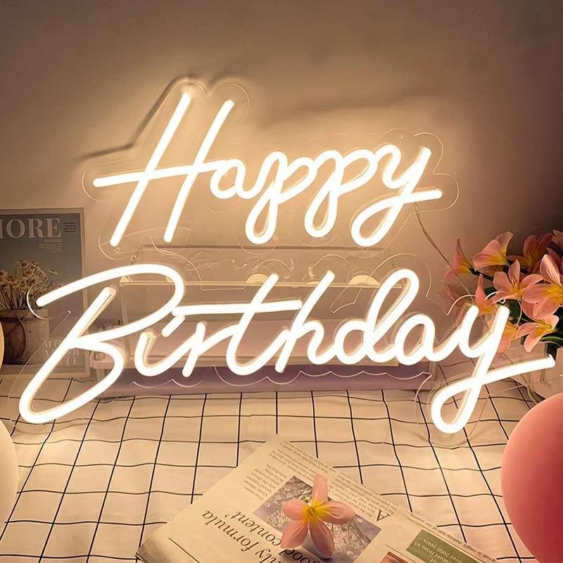 Happy Birthday LED Neon Sign Custom Warm White Light Up Sign for Wall ...
