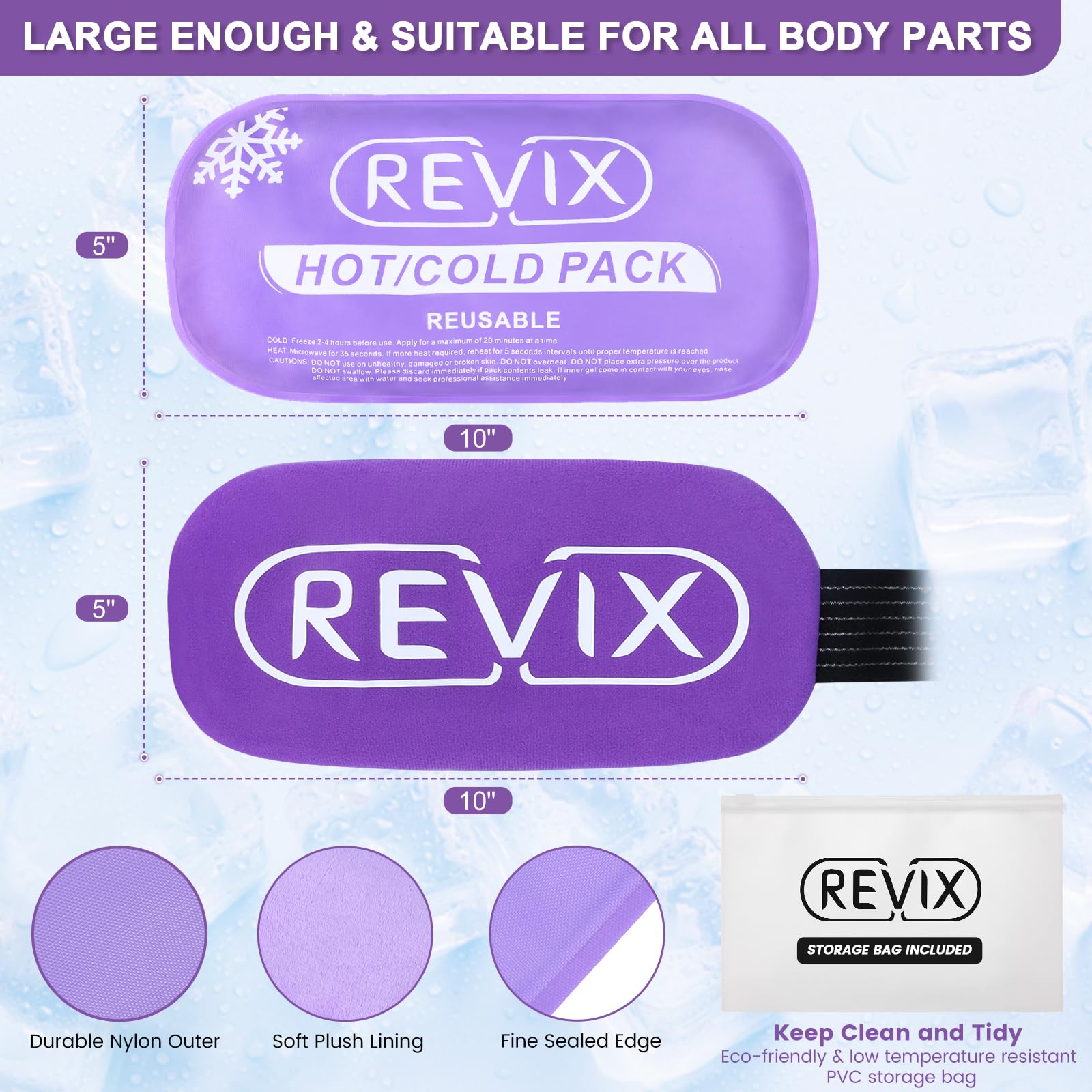 REVIX Ice Packs for Injuries Reusable, 2 Packs Hot and Cold Pack with ...