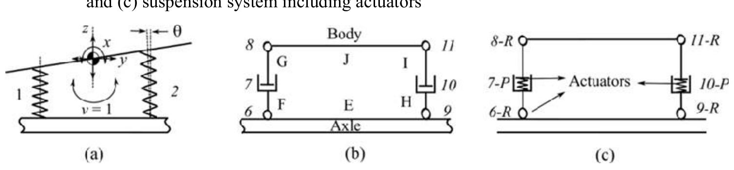 Various types of joints and bodies: 1) revolute joints; 2) spring ...