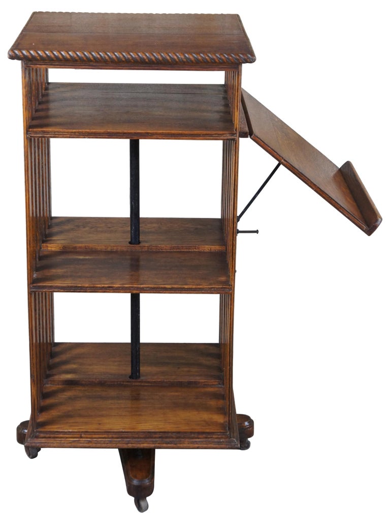 Antique Early 20th Century Oak Revolving Library Bookcase With Reading ...