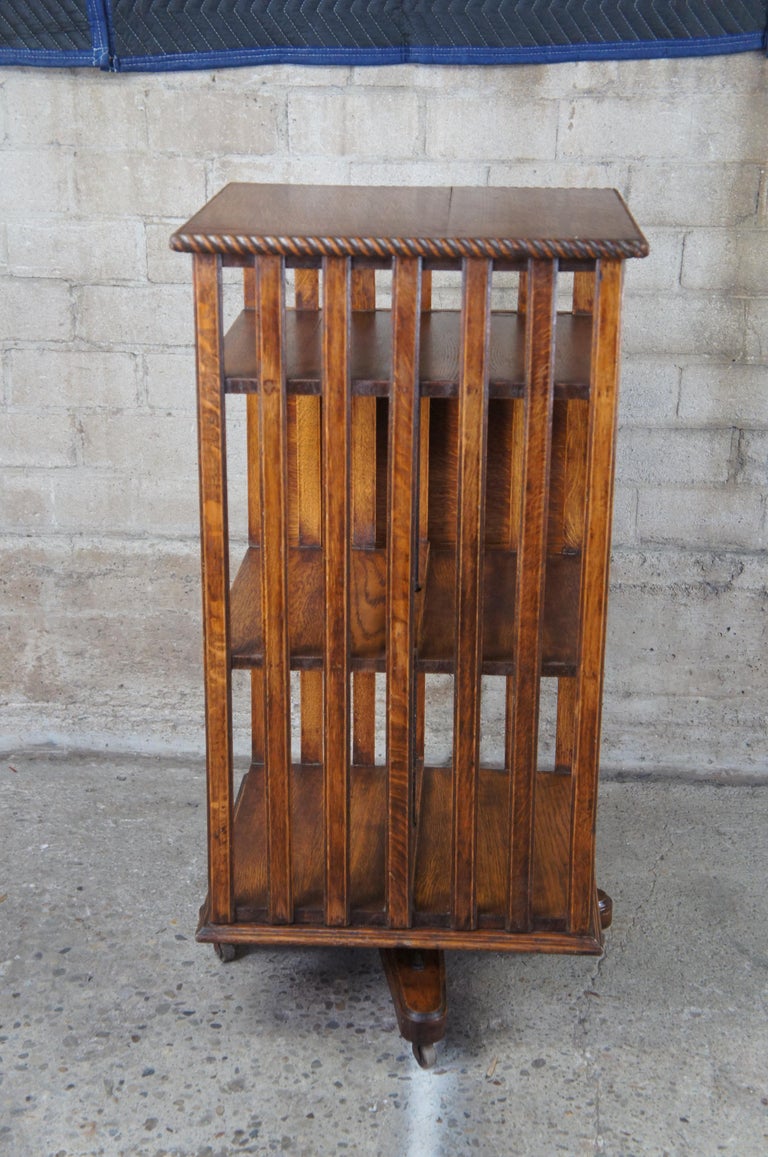 Antique Edwardian Quartersawn Oak Revolving Library Bookcase Pedestal ...