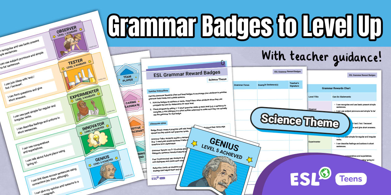 ESL Grammar Reward Badges - Science Theme [Teens]