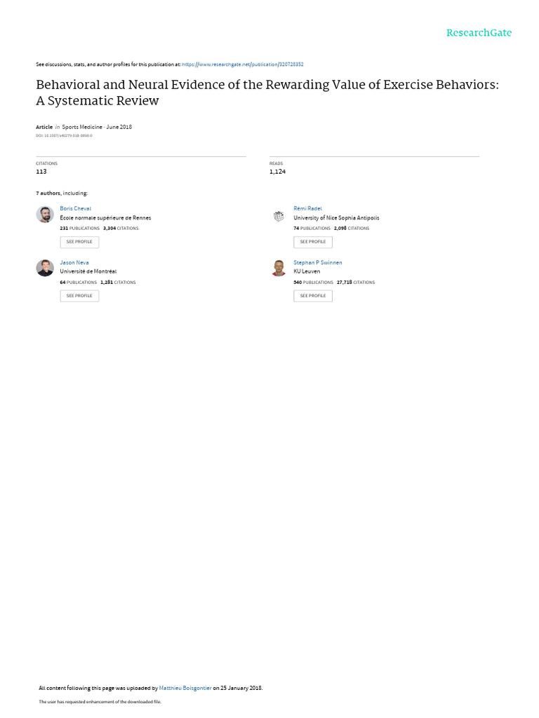 Behavioral and Neural Evidence of The Rewarding Value of Exercise ...