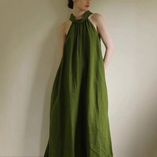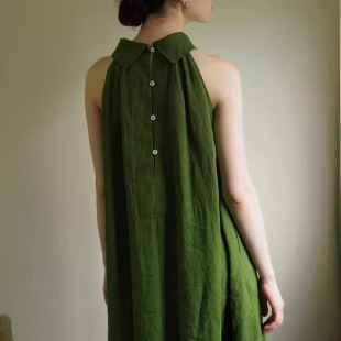 Rewear Collection 08 进口法国亚麻砂洗肌理感挂脖连衣裙夏13024-阿里巴巴