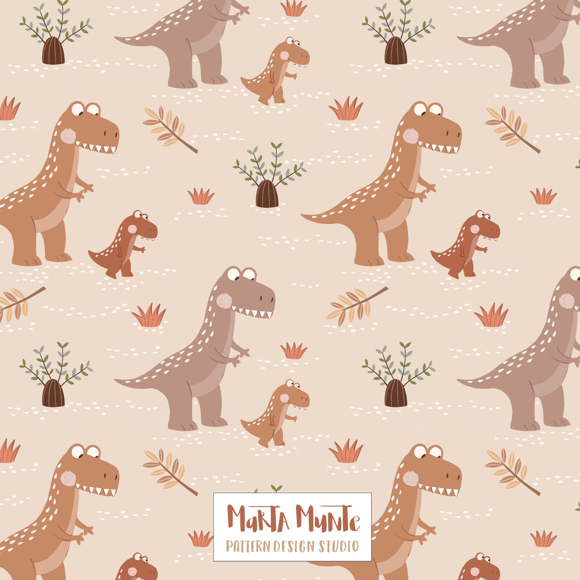 Two T-rex Families Seamless Pattern Design in Brown Colors for - Etsy