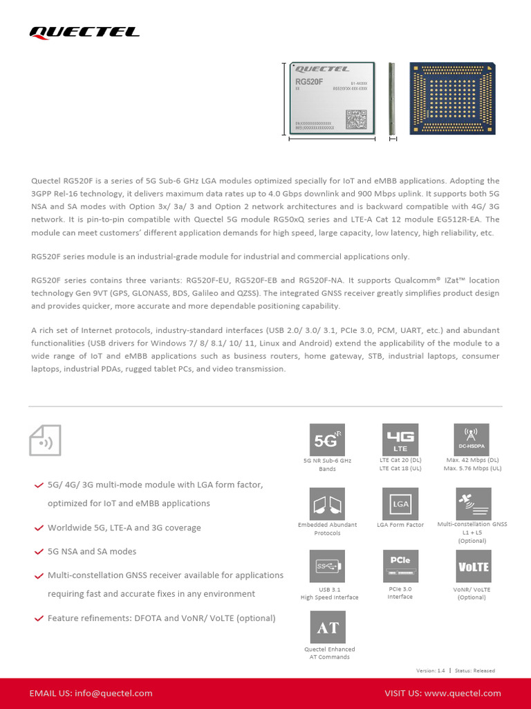Quectel RG520F Series 5G Specification V1.4-1 | PDF | 4 G | Computer ...