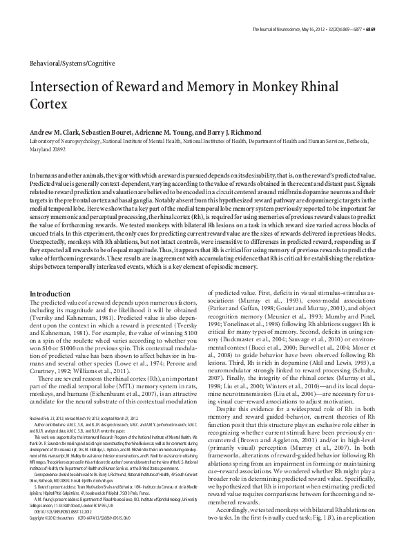 (PDF) Intersection of Reward and Memory in Monkey Rhinal Cortex