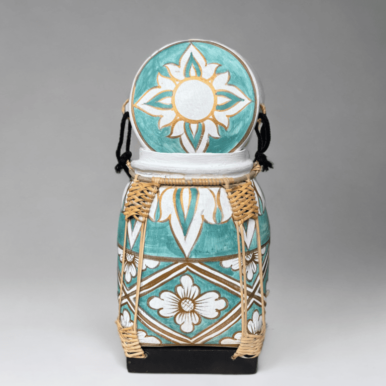 Elegant Bamboo Rice Box with Teal and Gold Floral Design - Lanna Souvenirs