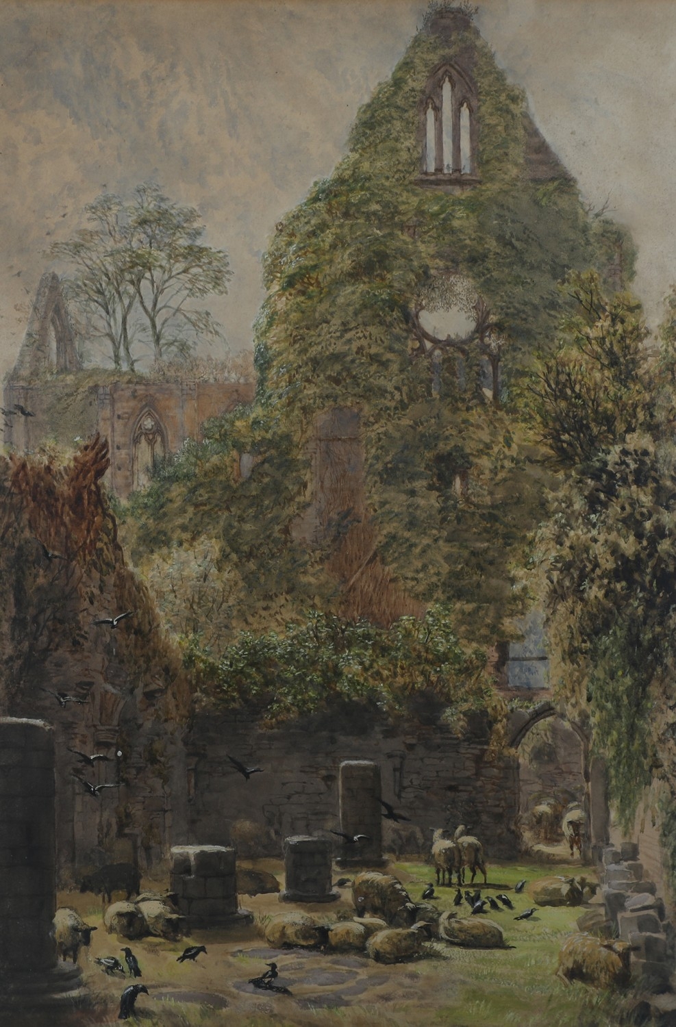RICHARD RAYNER (1843-1908), Abbey Ruins with Sheep, watercolour ...