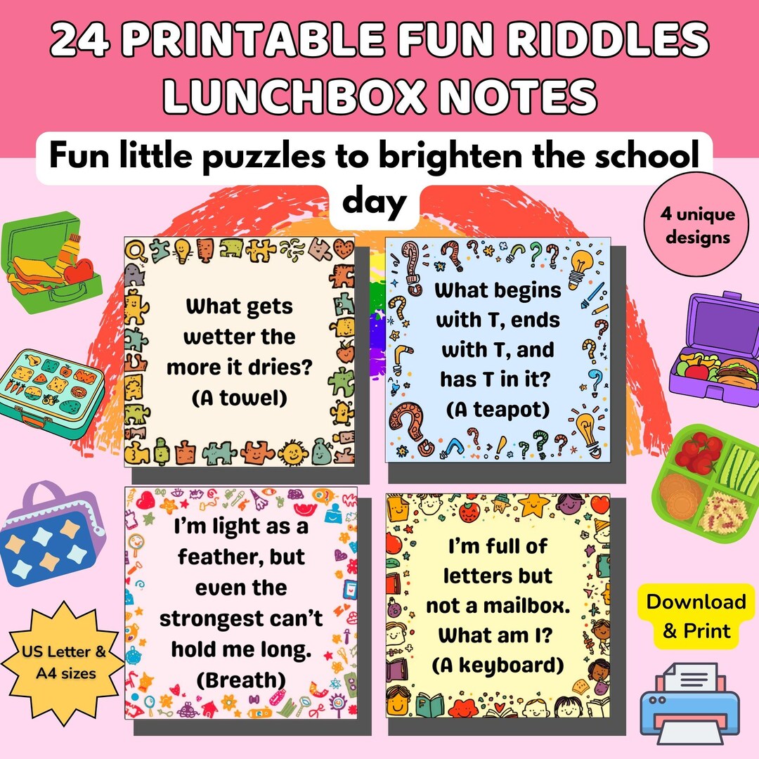 Printable Lunchbox Riddle Notes for Kids: Fun Jokes (digital Download ...