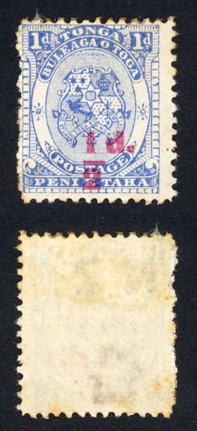 Tonga SG15 1/2d on 1d Bright Ultramarine in Carmine M/M Bar to right ...