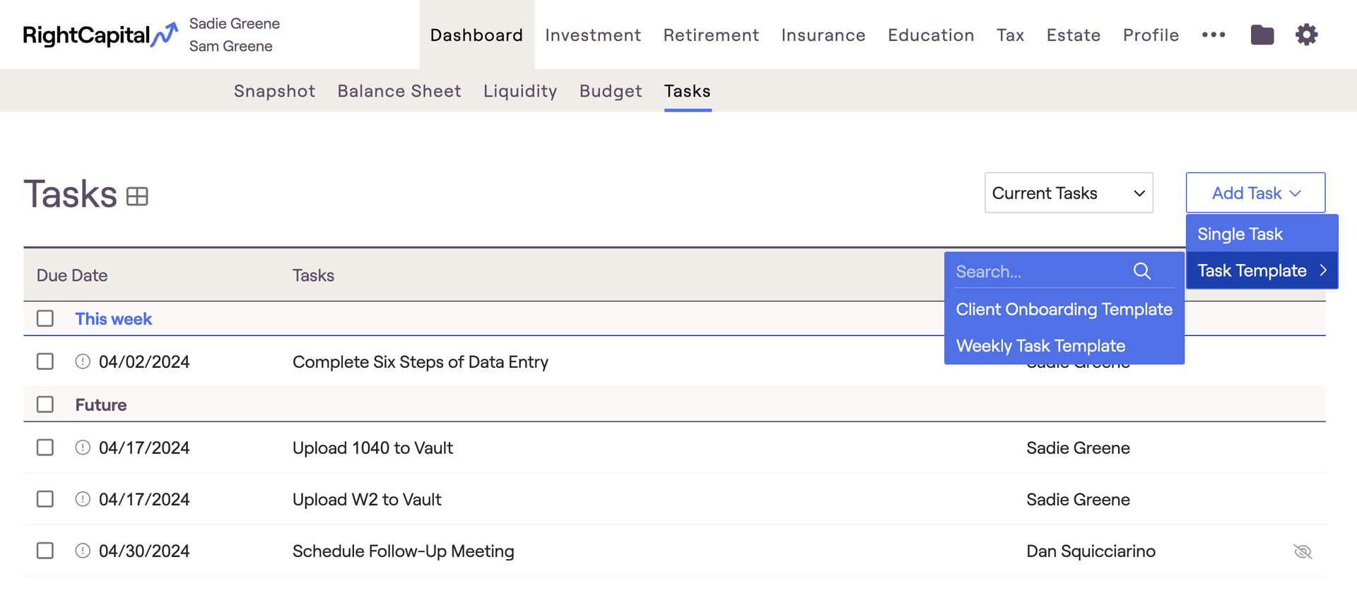 Tasks - RightCapital Help Center