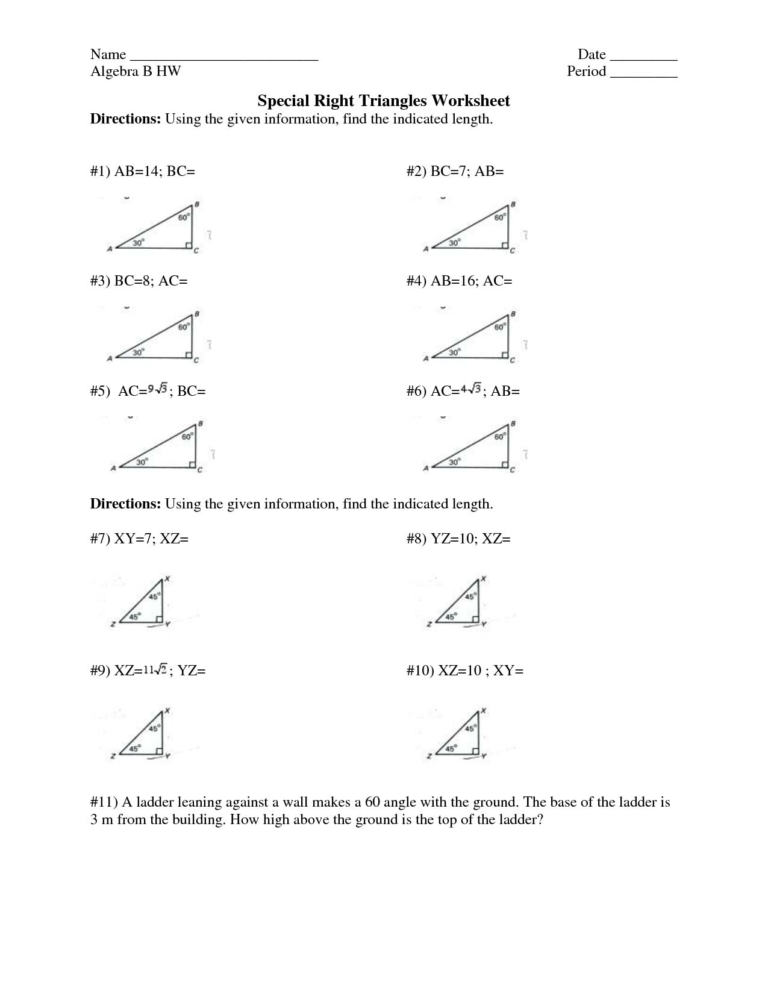 30 60 90 Triangle Word Problems Worksheet Right Triangle Word Problems