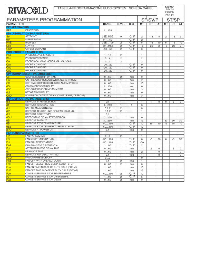 Rivacold Parameterliste 1+2 Ebene Carel | PDF | Brain | Temporal Lobe