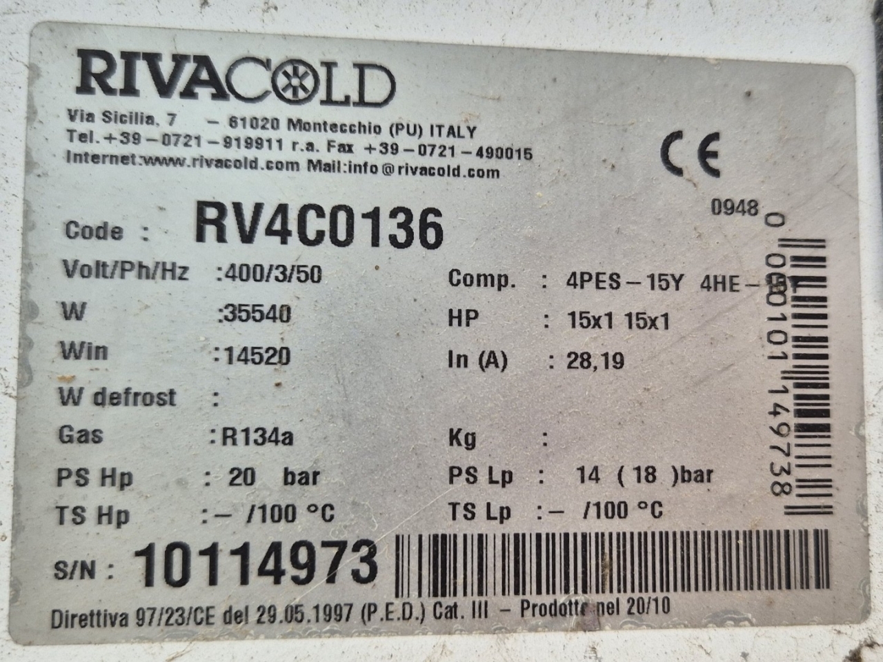 Used Rivacold RV4C0136 / 4HE-15Y-40P (x1) & 4PES-15Y-40P (x1 ...