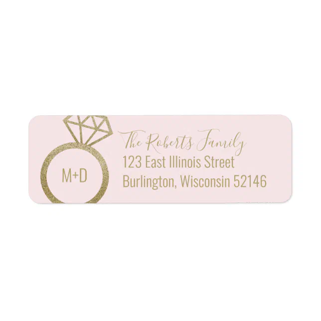 Pink and Gold Engagement Ring Wedding Label | Zazzle