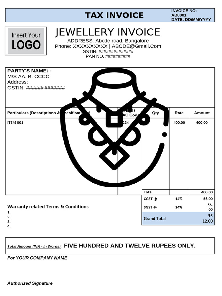 Jewelry Retail Invoice Template ~ Billing Software Guru