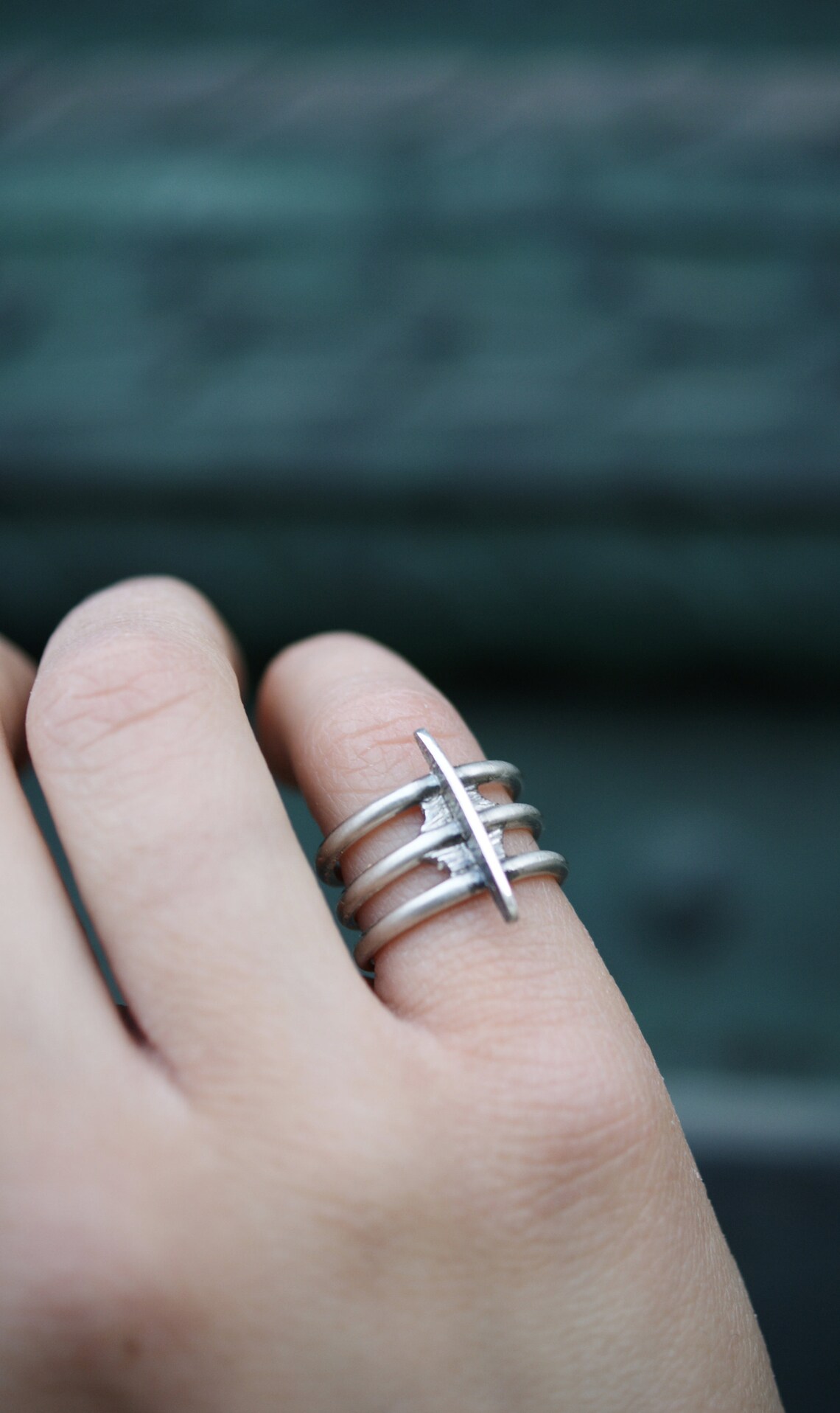 Statement Silver Ring, Triplet Statement Ring, Bold Geometric Ring ...