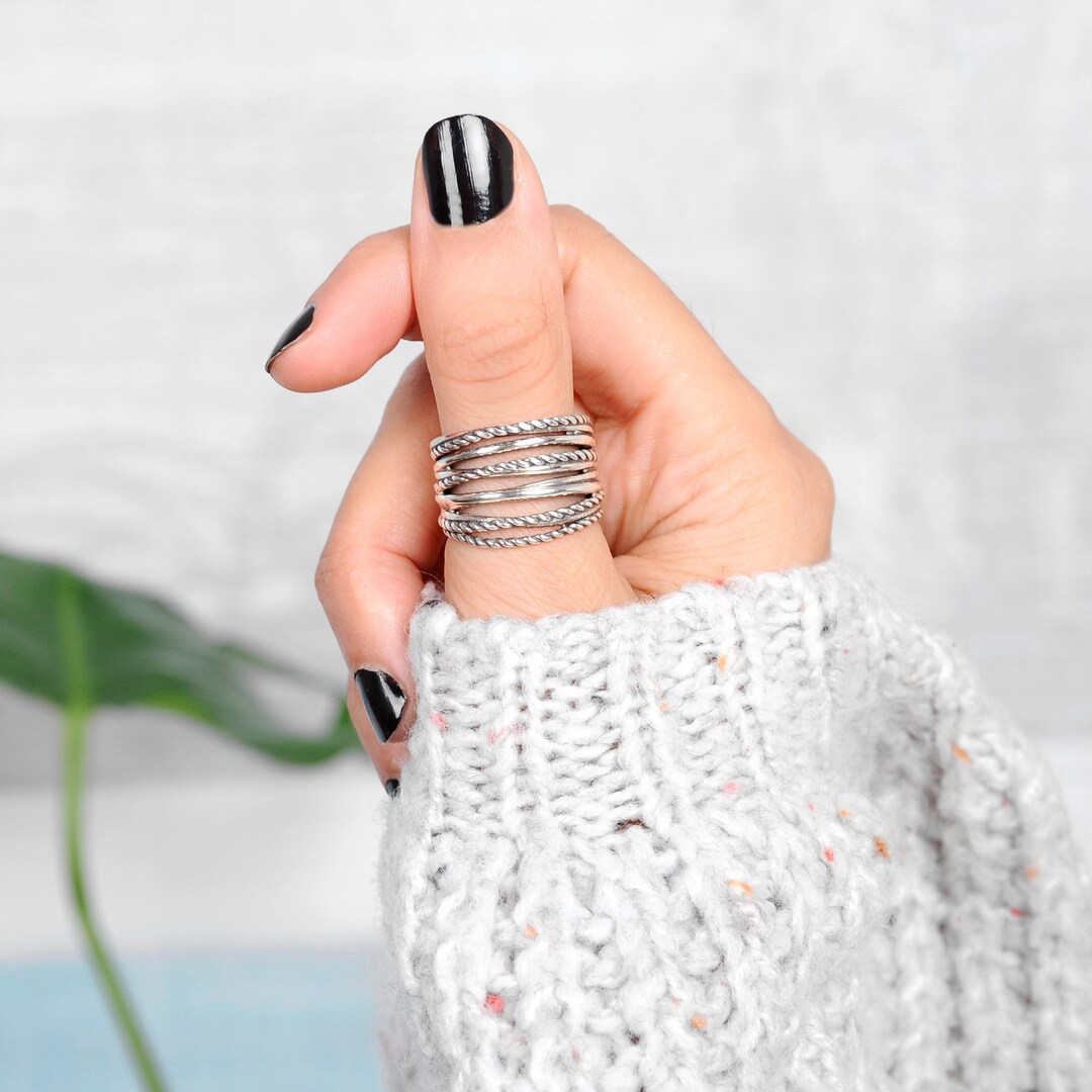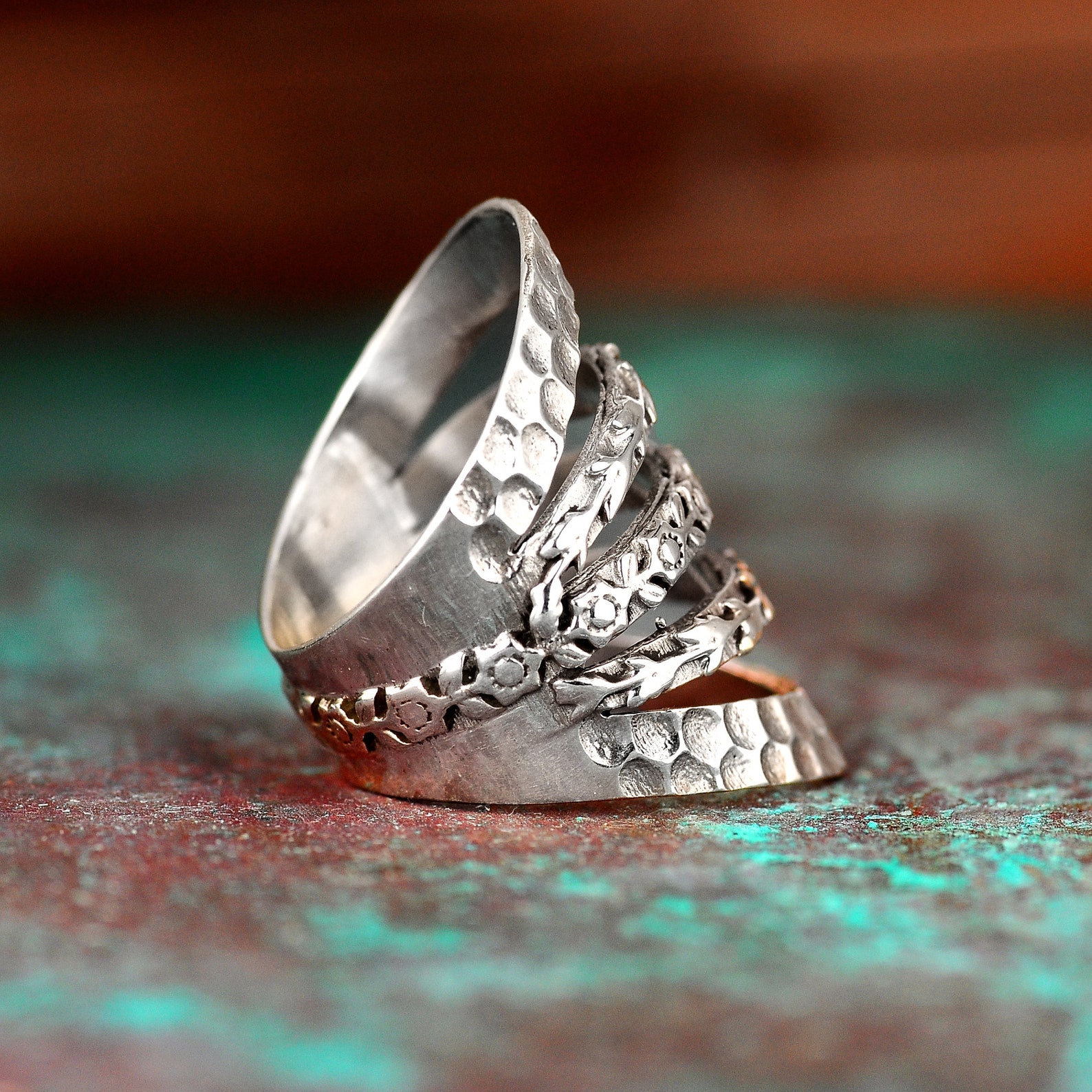 Handmade Silver Statement Rings for Women Oversize Bohemian Geometric ...
