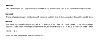 Examples of Rings Example 1: The set \mathbb{Z} of integers under ordi..