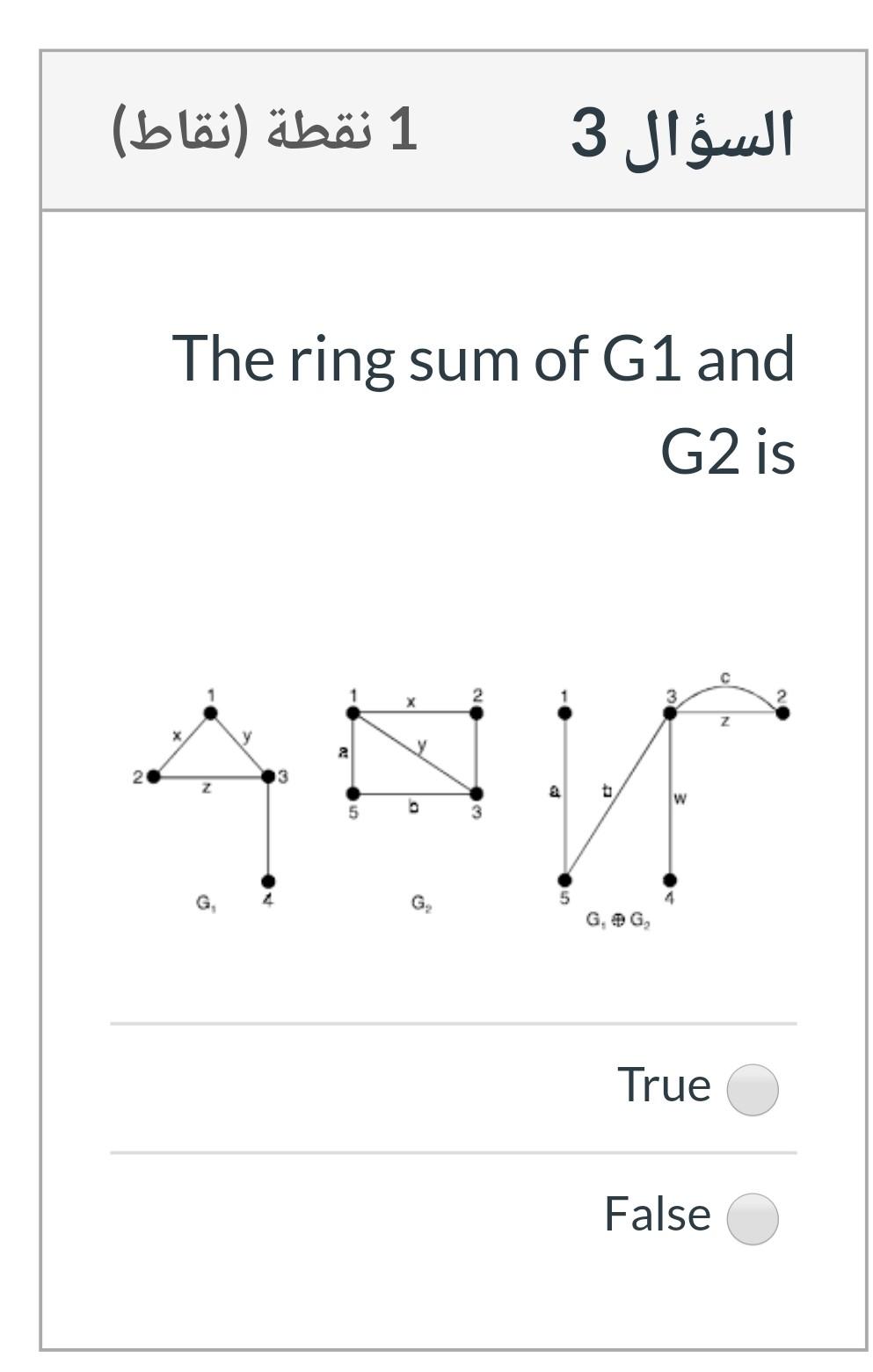 Solved 1 نقطة (نقاط) السؤال 3 The ring sum of G1 and G2 is 2 | Chegg.com
