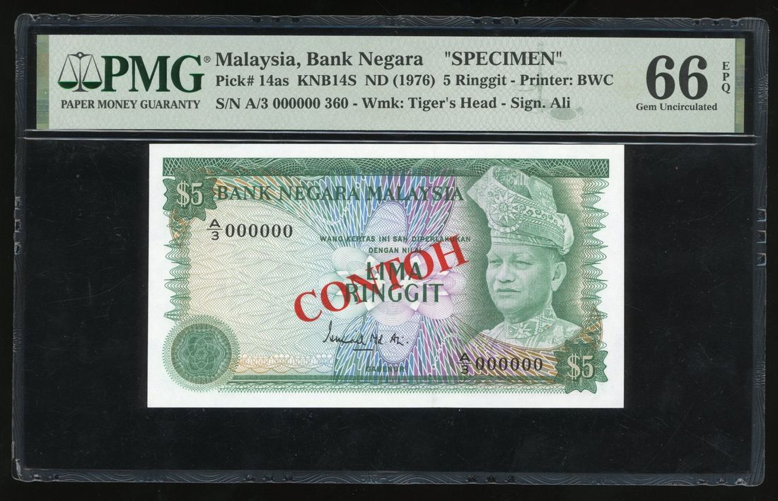 Malaysia Contoh RM5 ringgit specimen PMG65 EPQ gem UNC, Hobbies & Toys ...