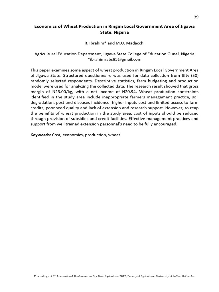 Economics of Wheat Production in Ringim Local Government Area of Jigawa ...