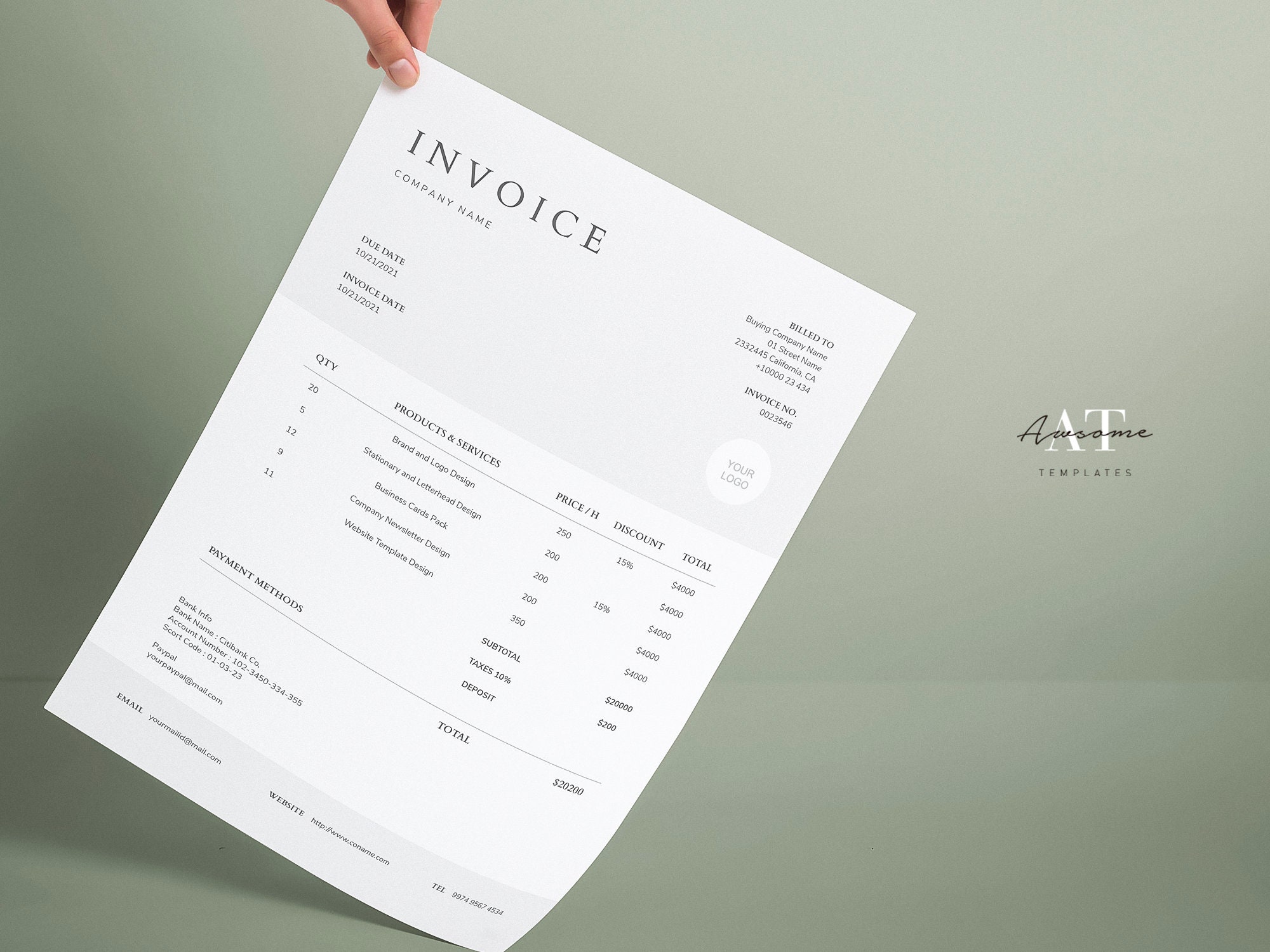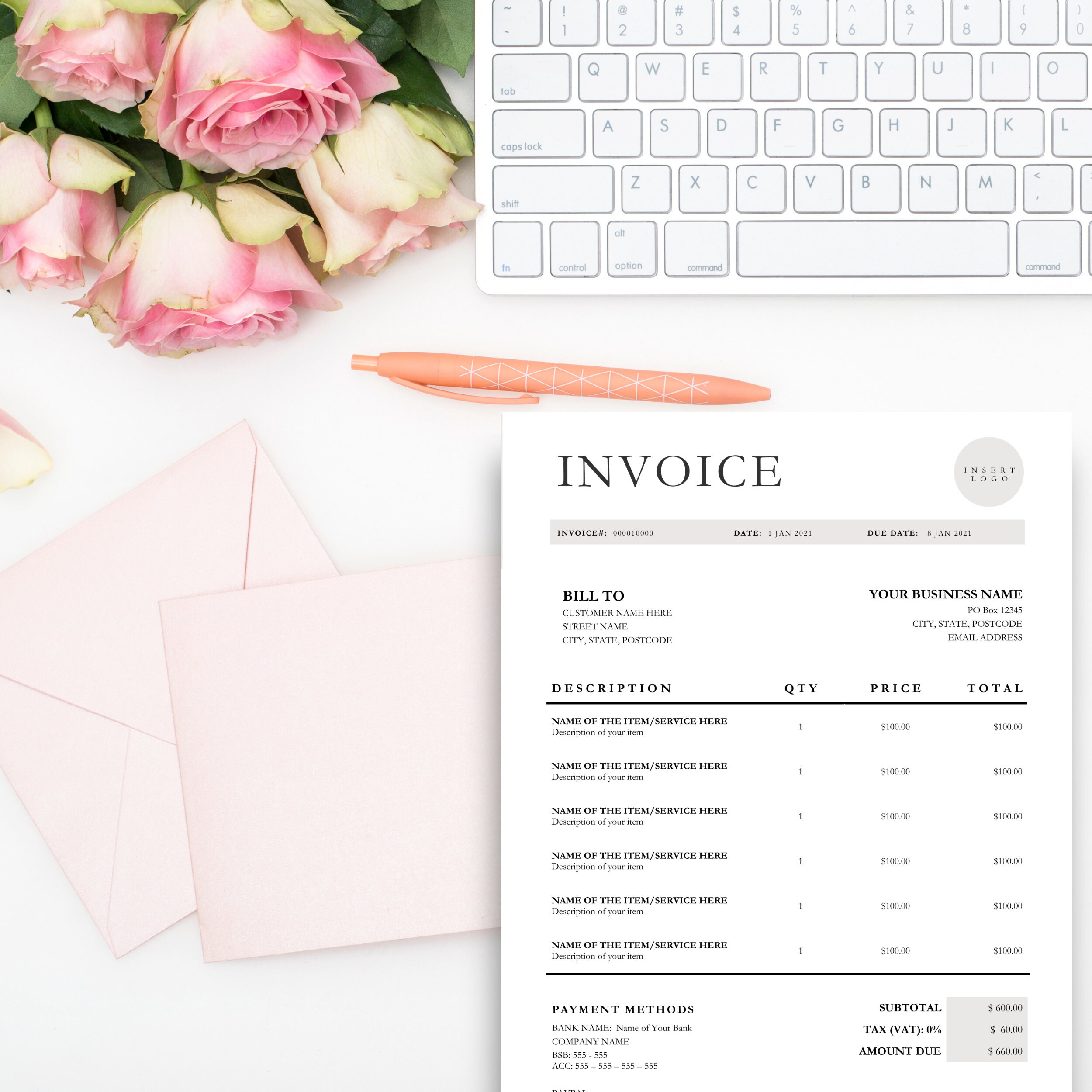 Printable Invoice Template - Digital Download - Etsy