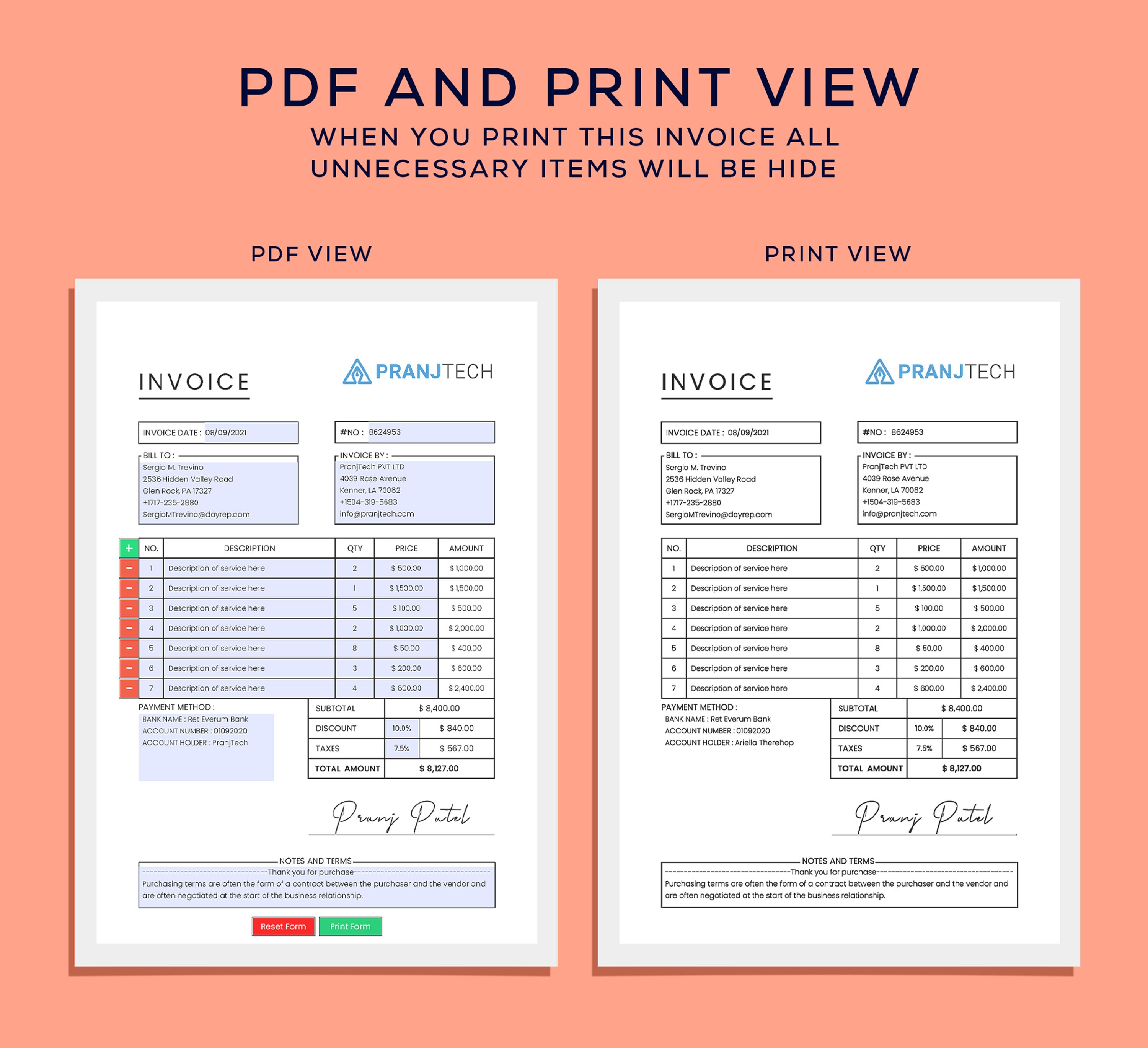 Invoice Template Editable Fillable Pdf Template Excel Etsy ...