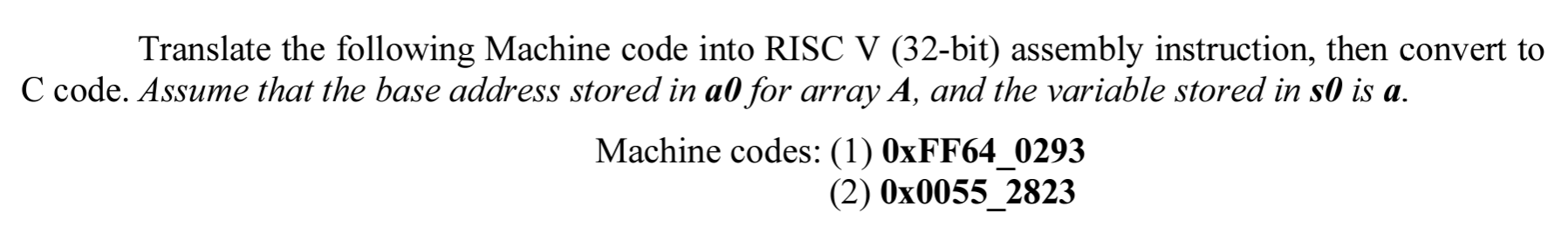 Solved Translate the following Machine code into RISC V | Chegg.com