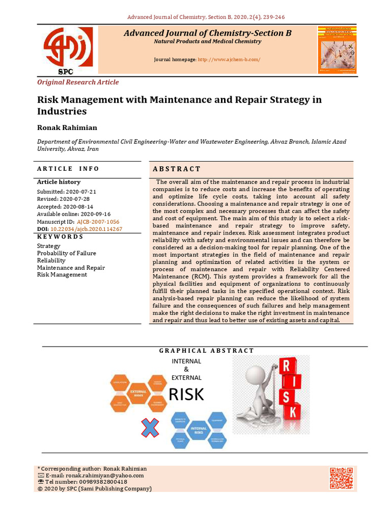 Risk Management With Maintenance and Repair Strategy 1692480961 | PDF ...