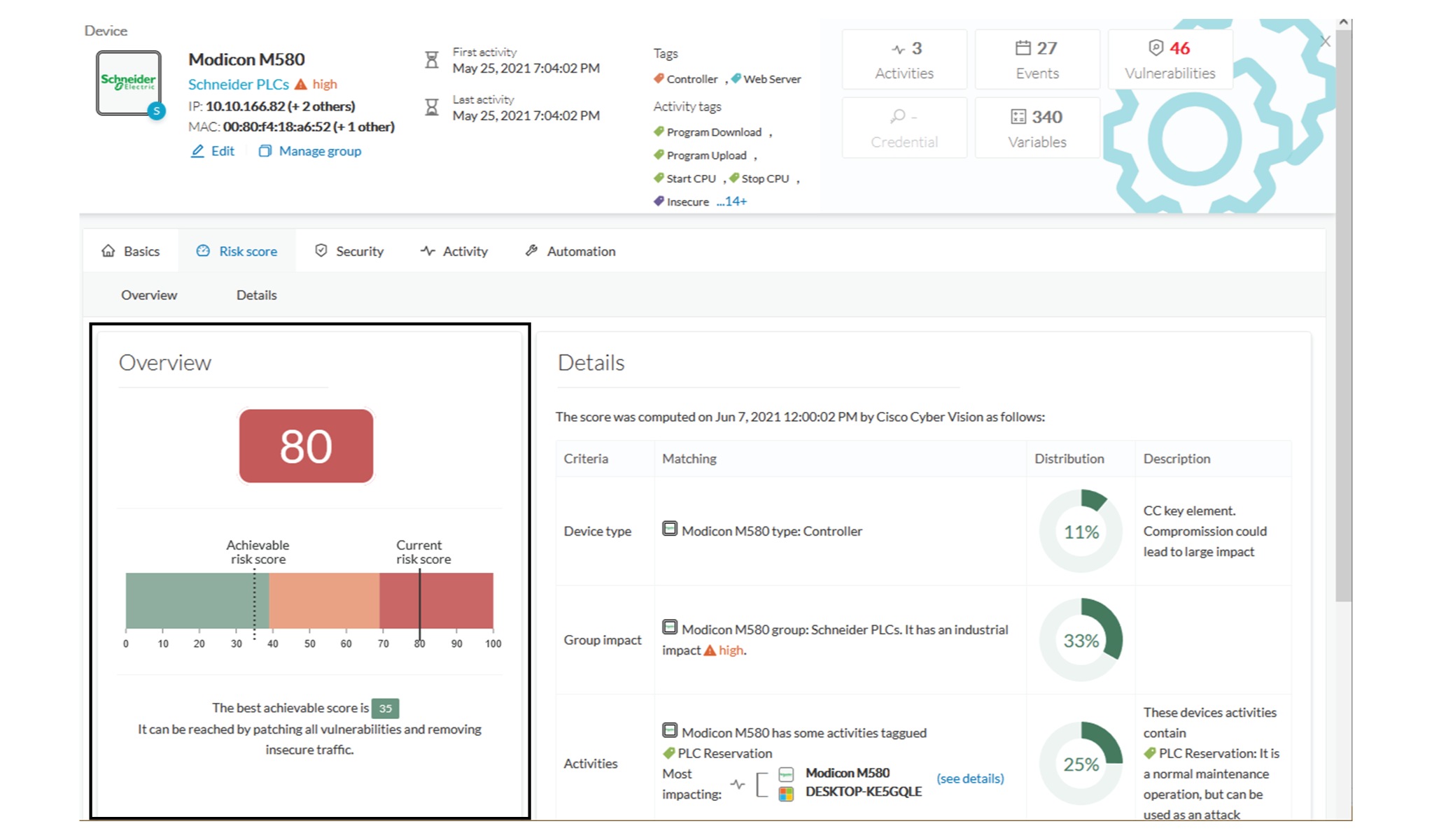Cisco Cyber Vision GUI User Guide, Release 4.1.2 - Risk score [Cisco ...