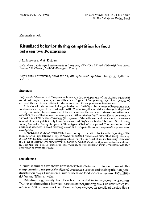 (PDF) Ritualized behavior during competition for food between two ...