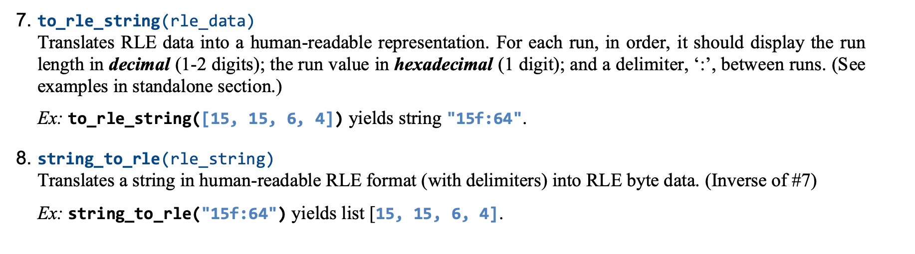 Solved 7. to_rle_string(rle_data) Translates RLE data into a | Chegg.com