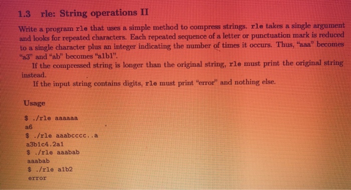 Solved 1.3 rle: String operations II Write a program rle | Chegg.com