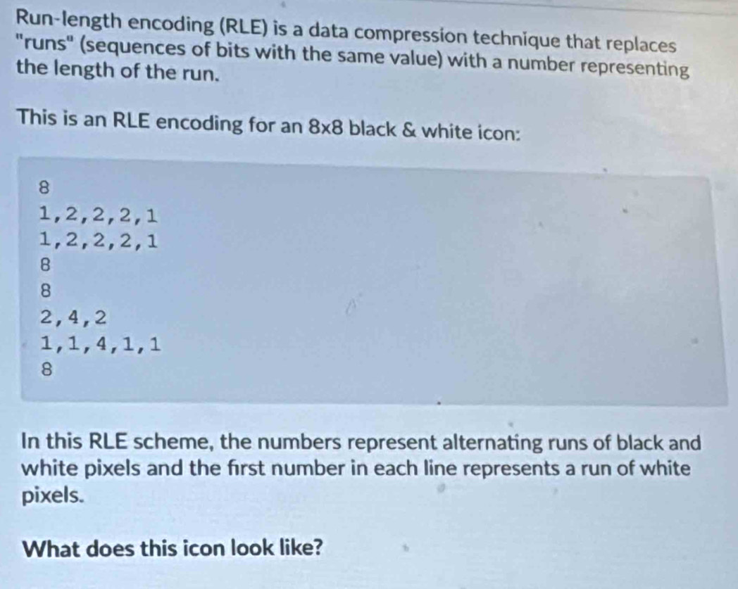 Solved: Run-length encoding (RLE) is a data compression technique that ...