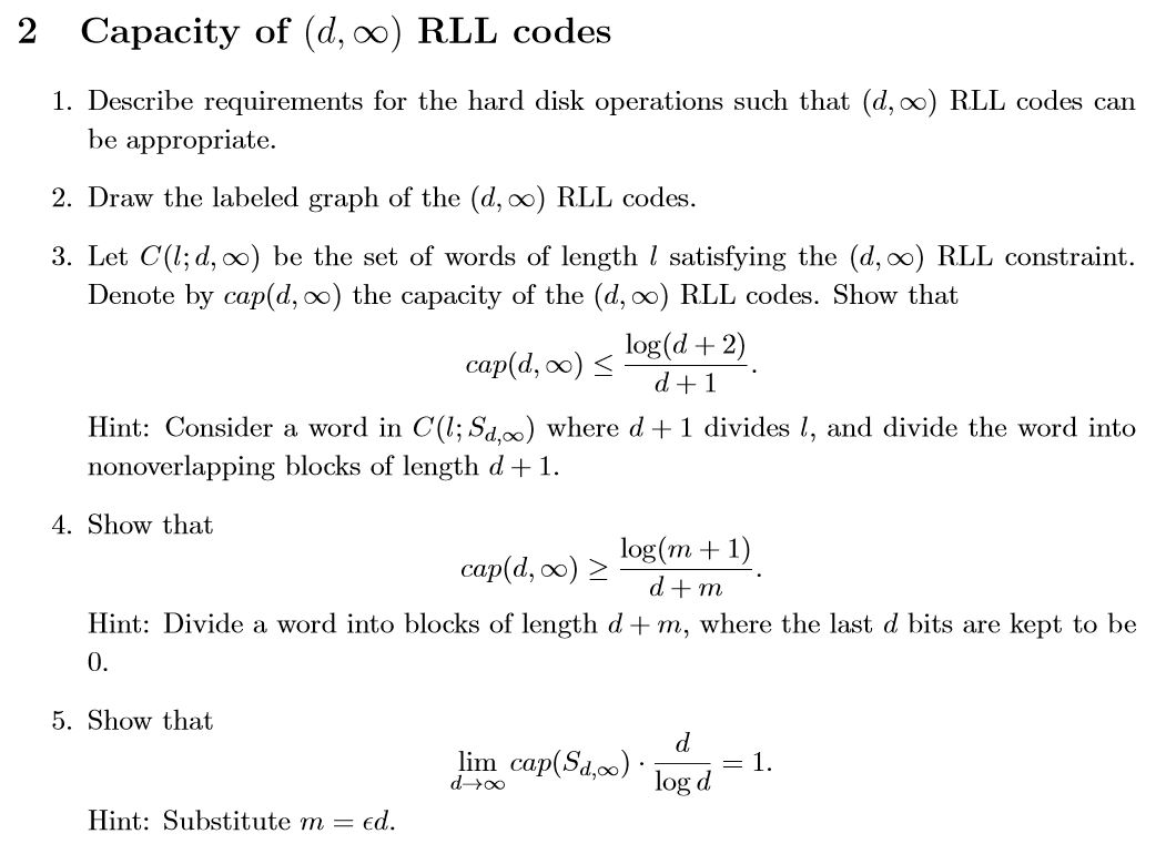 Capacity of (d, infinity) RLL codes Describe | Chegg.com