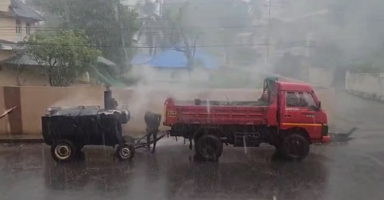 തൃശൂരിൽ കനത്ത മഴയ്ക്കിടെ ടാറിങ് | മനോരമ ഓൺലൈൻ ന്യൂസ്- kerala news ...